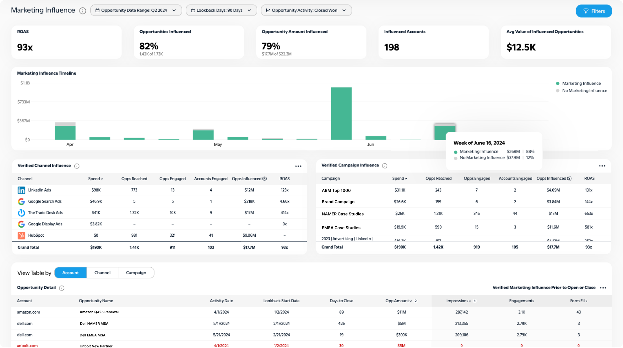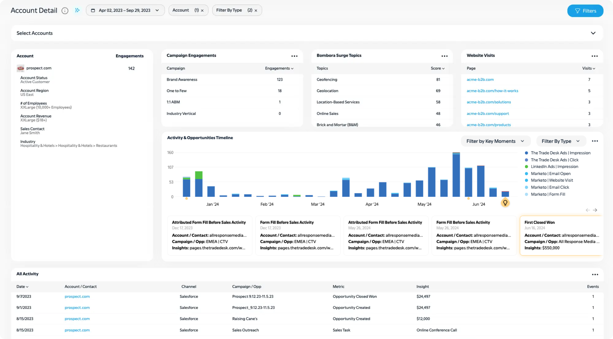 View the entire multi-channel account journey to Identify the specific tactics and content that led to an Opportunity Win