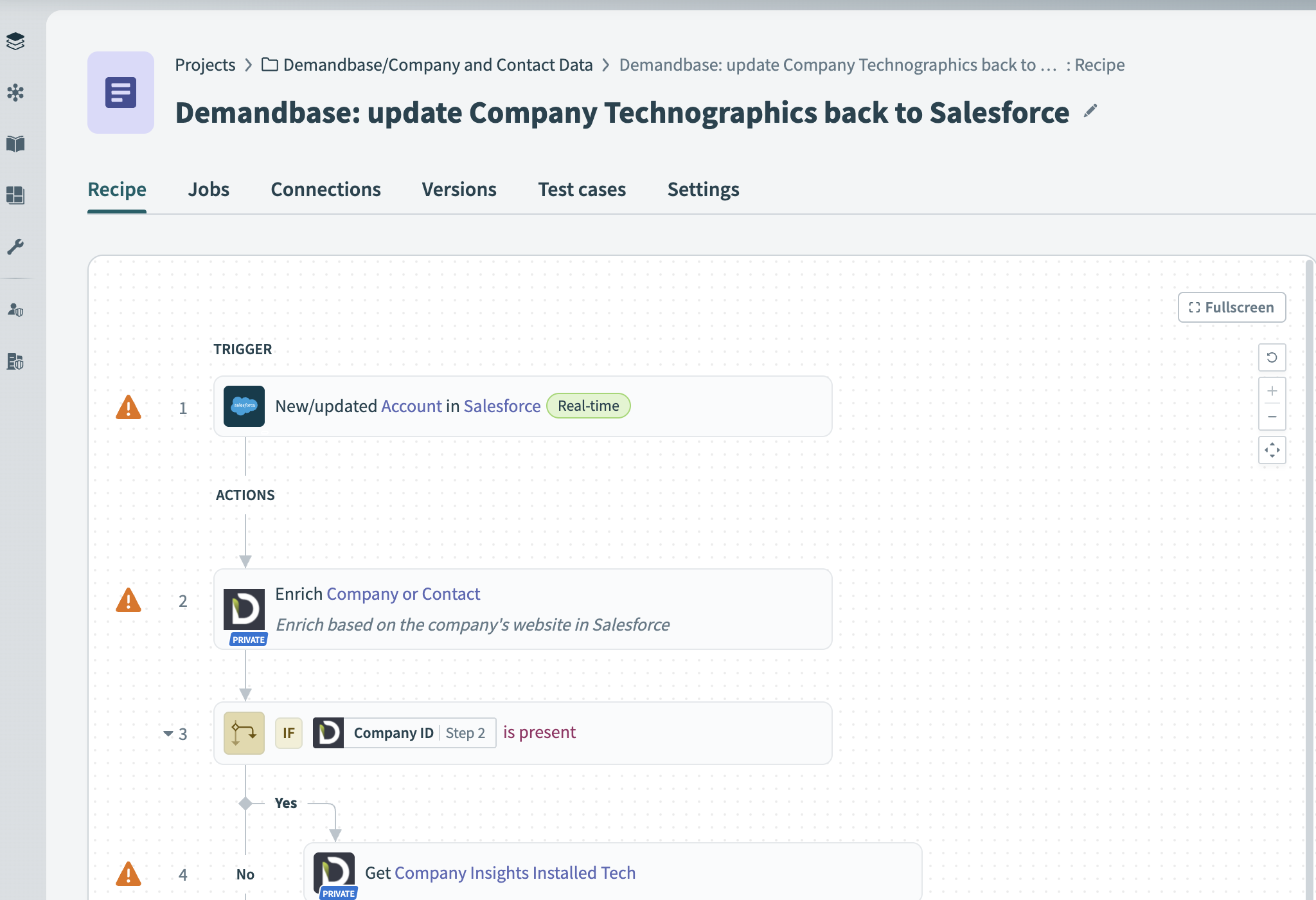 Unlock deeper account insights and drive more personalized engagement by enriching your Salesforce account records with up-to-date technographic data from Demandbase. This Workato recipe automates the process: whenever an account is updated in Salesforce, the corresponding company record is instantly enriched with Demandbase’s comprehensive technographics, providing your sales and marketing teams with a clear view of each account’s technology stack.